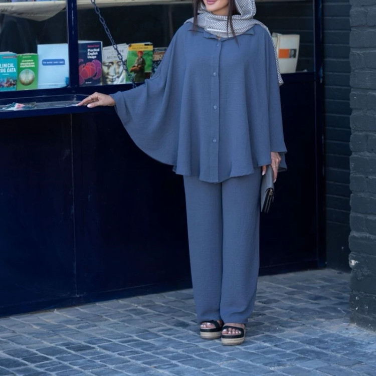 شومیز مانتویی + شلوار ابروبادی طوسی