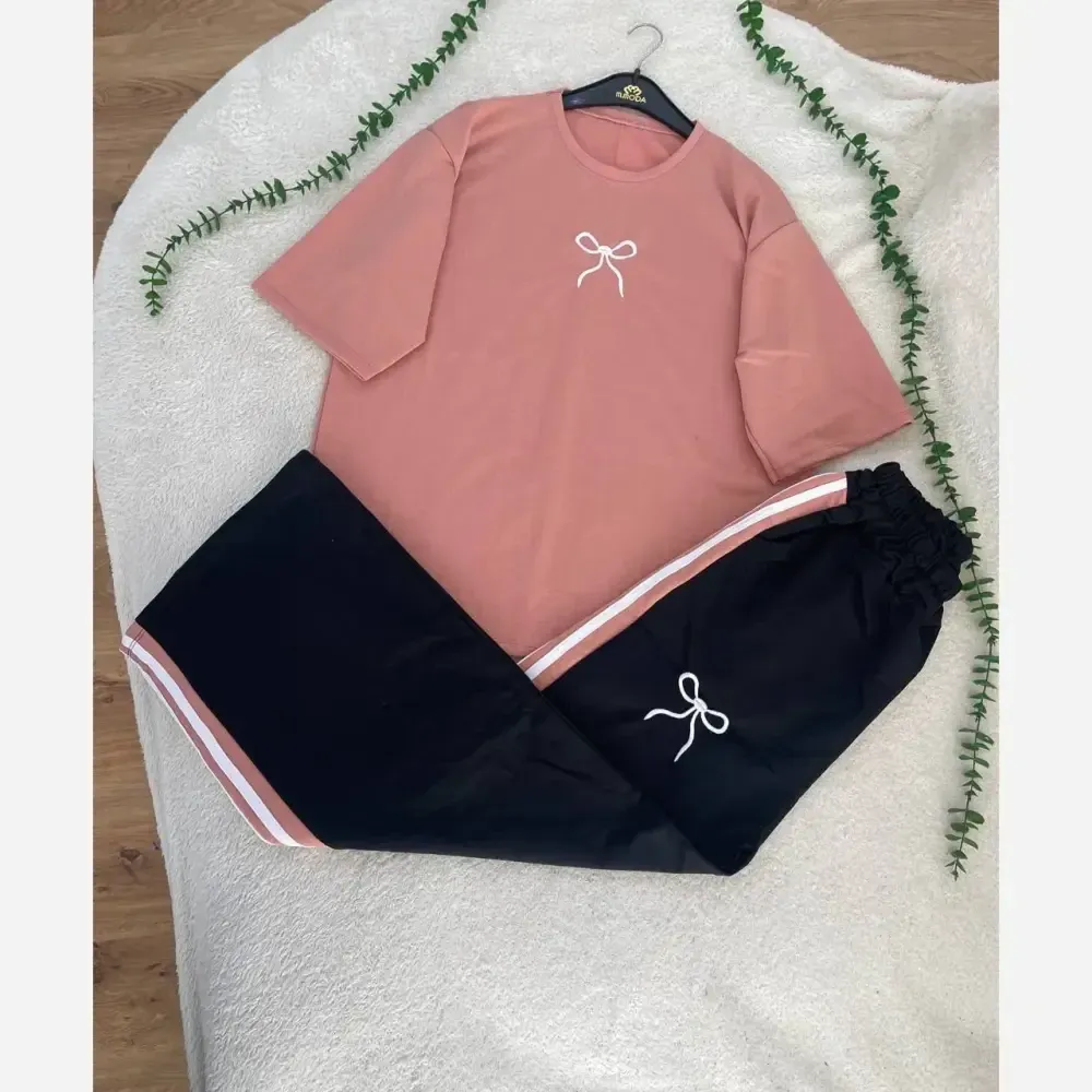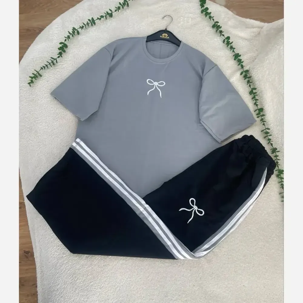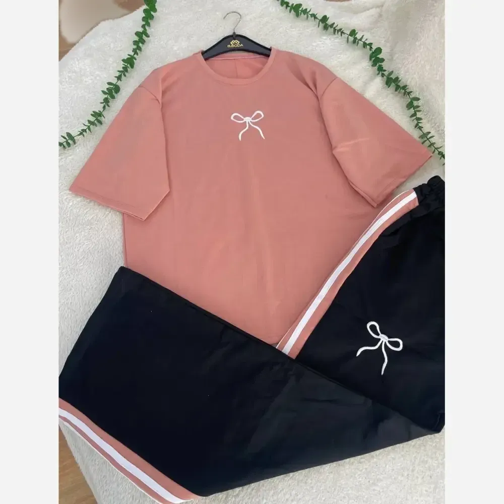 **ست تیشرت و شلوار زنانه دورس گلکسی پاپیونی فری سایز**