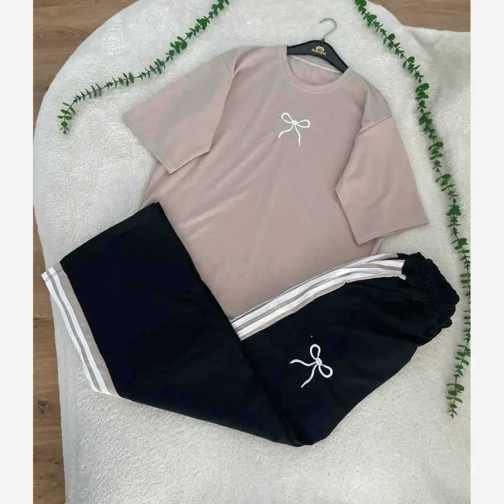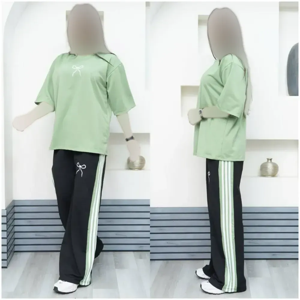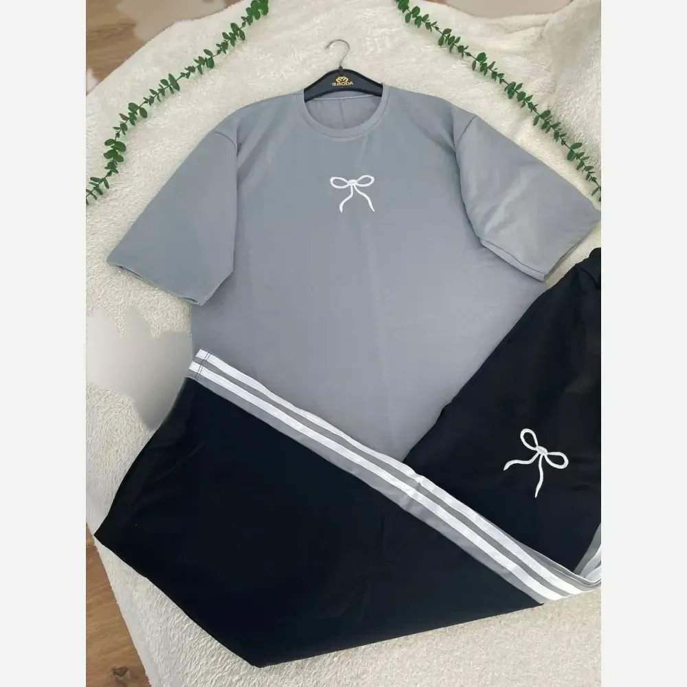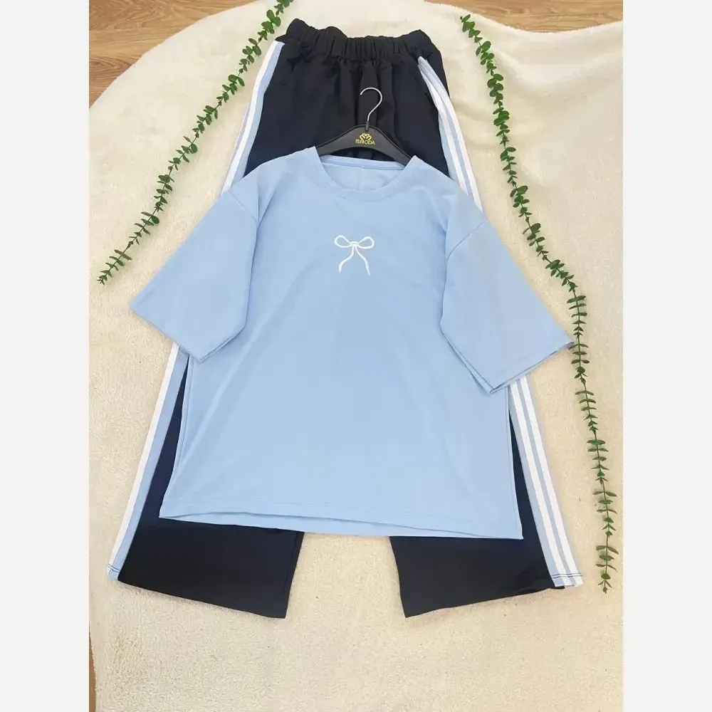 **ست تیشرت و شلوار زنانه دورس گلکسی پاپیونی فری سایز**