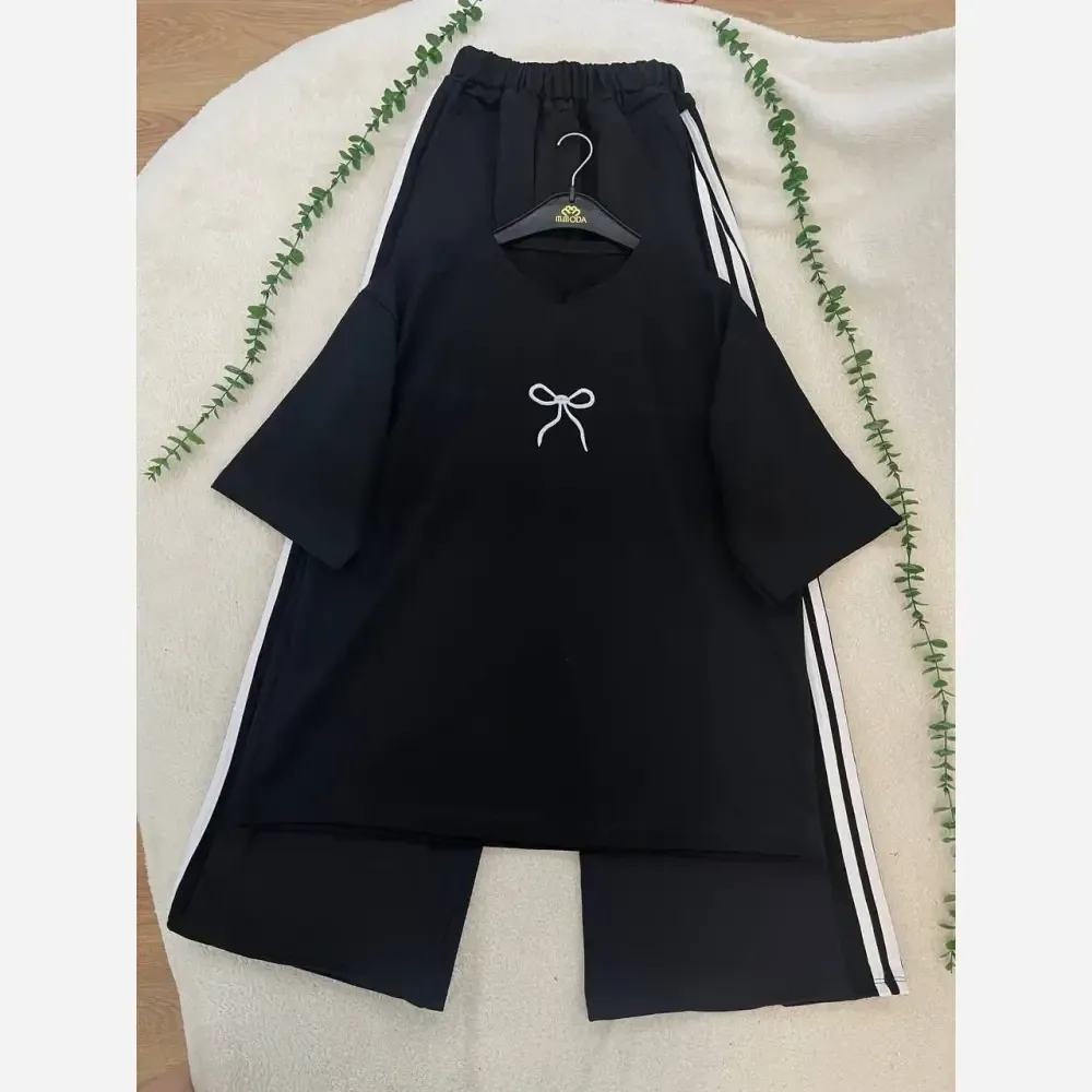 این تیشرت شلوار پاپیونی دورس گلکسی، با توجه به فری سایز بودن و راحتی مثالزدنی، گزینهای عالی برای تکمیل کمد لباس شماست.