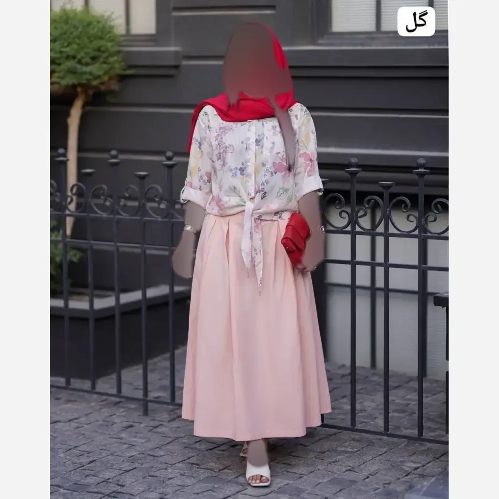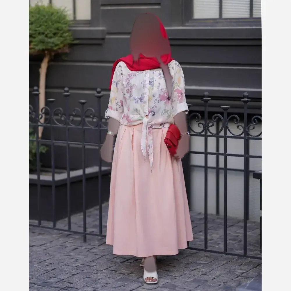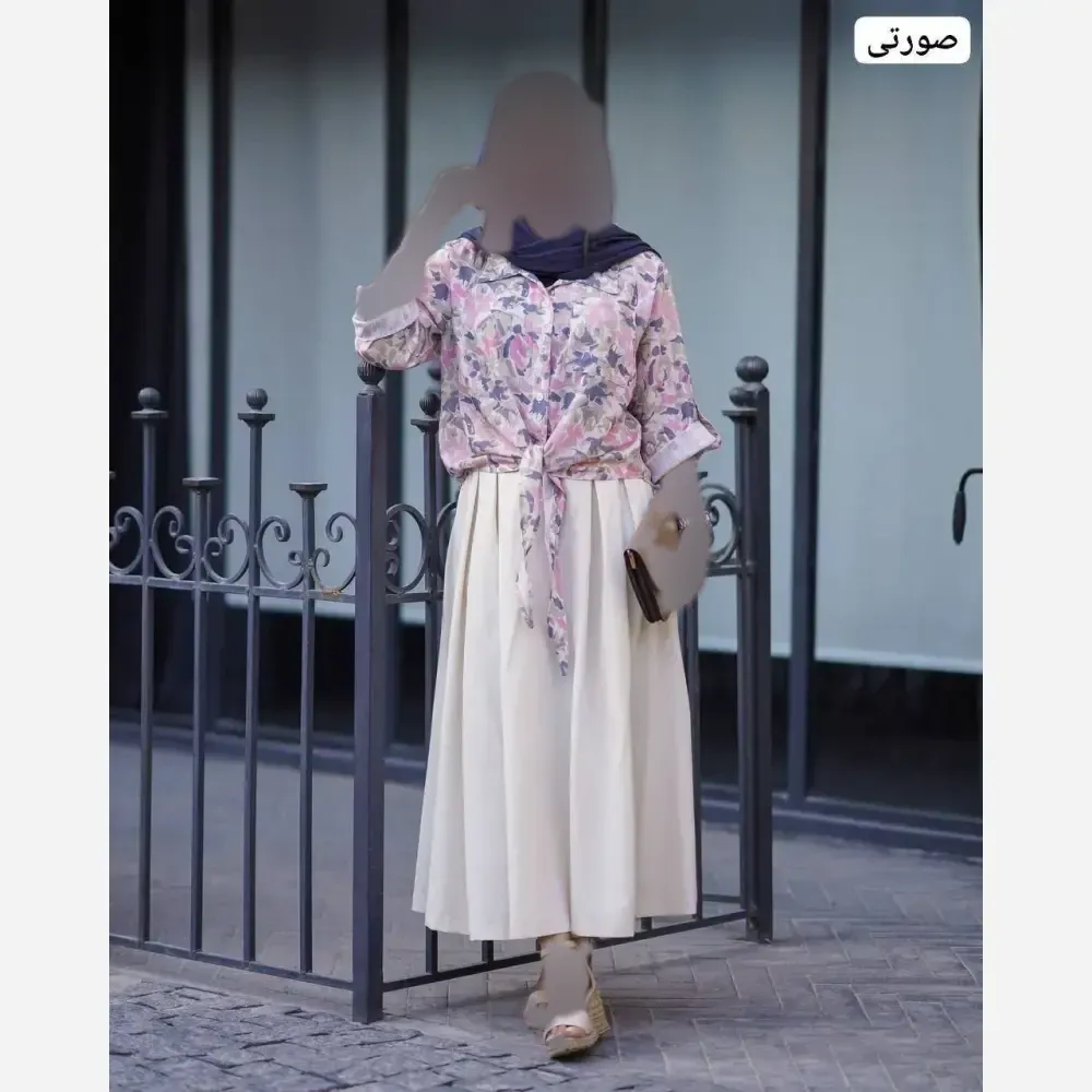 شومیز گره ای لینن پفکی وال اسلب فری سایز زنانه بهاری صورتی سبز گلدار