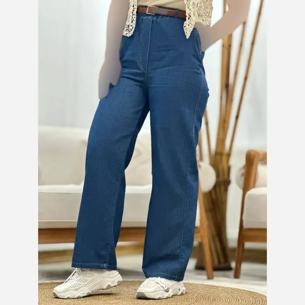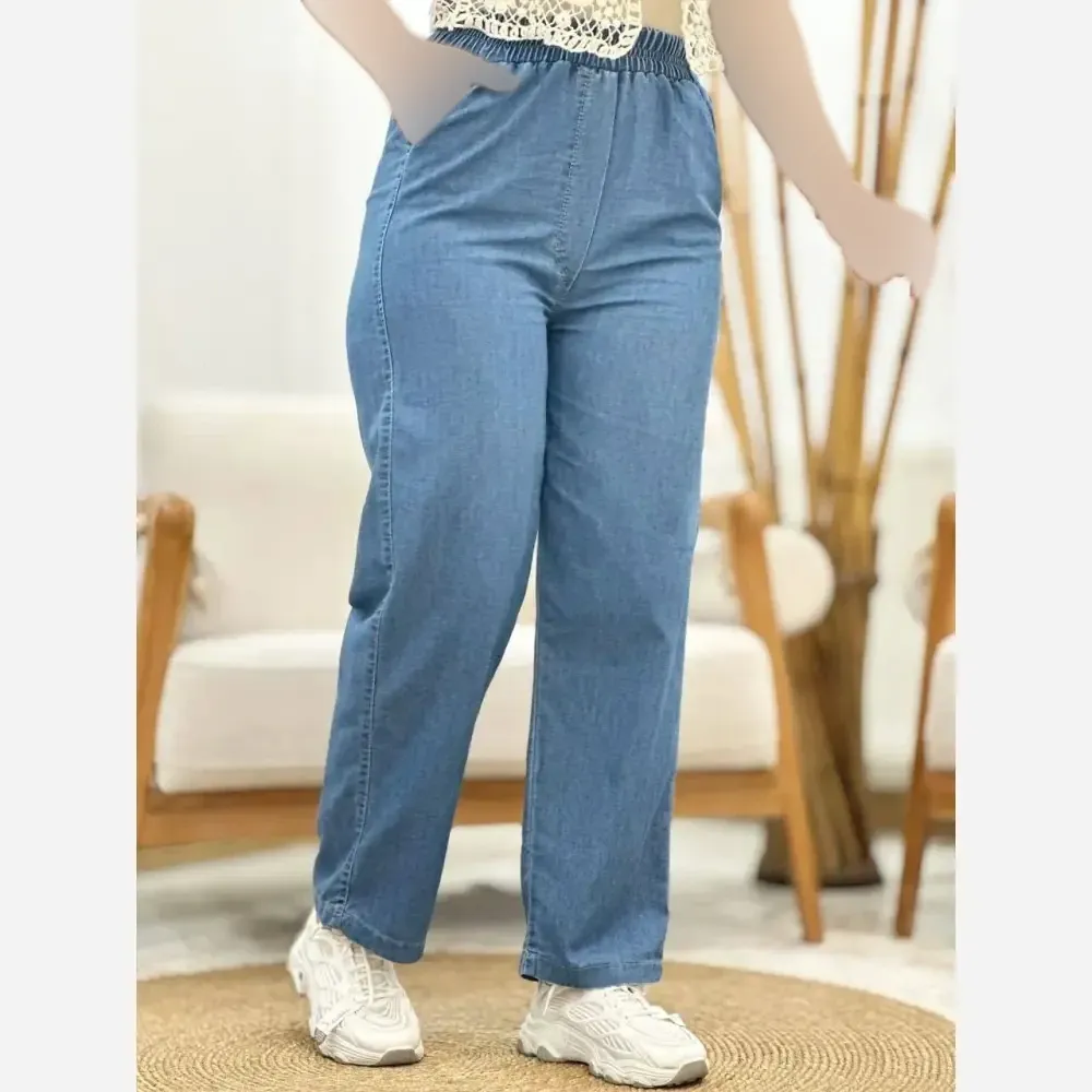 شلوار نیم بگ کاغذی زنانه جین اصل کمر کش در رنگ و سایزهای مختلف