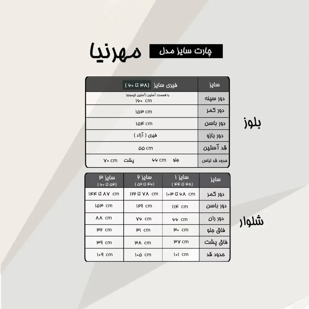 * **جنس:** پارچه صوفیا، نرم و راحت برای پوشیدن طولانی مدت.