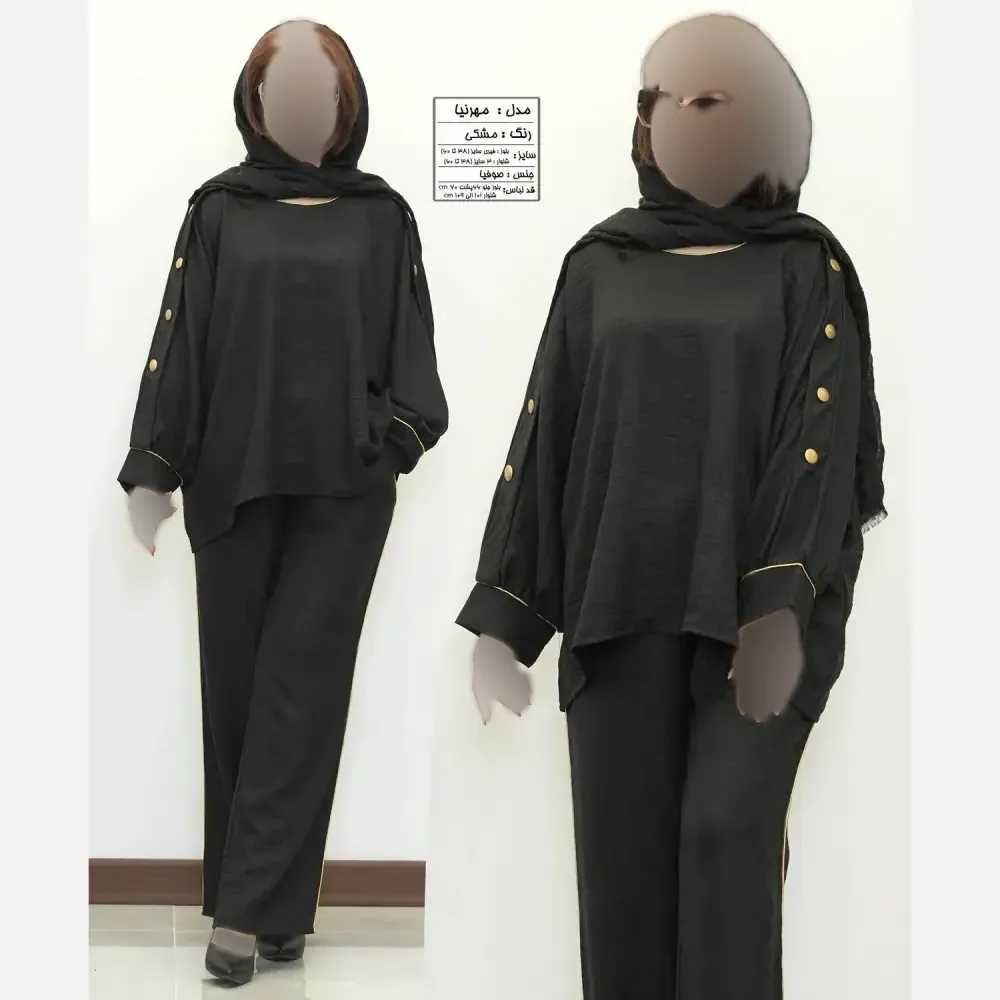 **ست بلوز و شلوار زنانه مهرنیا صوفیا مشکی سایز بزرگ**