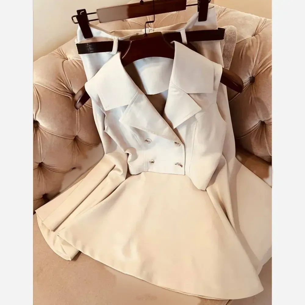 این ست جذاب شامل یک جلیقه کوتاه و یک دامن بلند است که با طراحی مدل نگاه و پارچه مازراتی چهارفصل، انتخابی ایدهآل برای استایلهای متنوع شما در تمام فصول سال محسوب میشود.