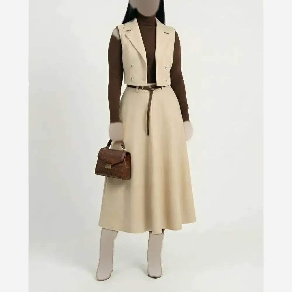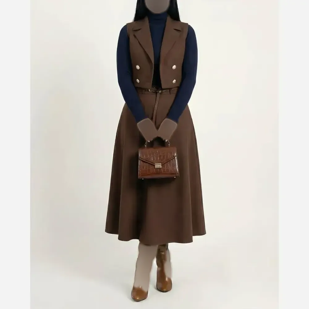 * **قد مناسب:** قد جلیقه 45 سانتیمتر و قد دامن 85 سانتیمتر است که ترکیبی متعادل و زیبا را ایجاد میکند.
