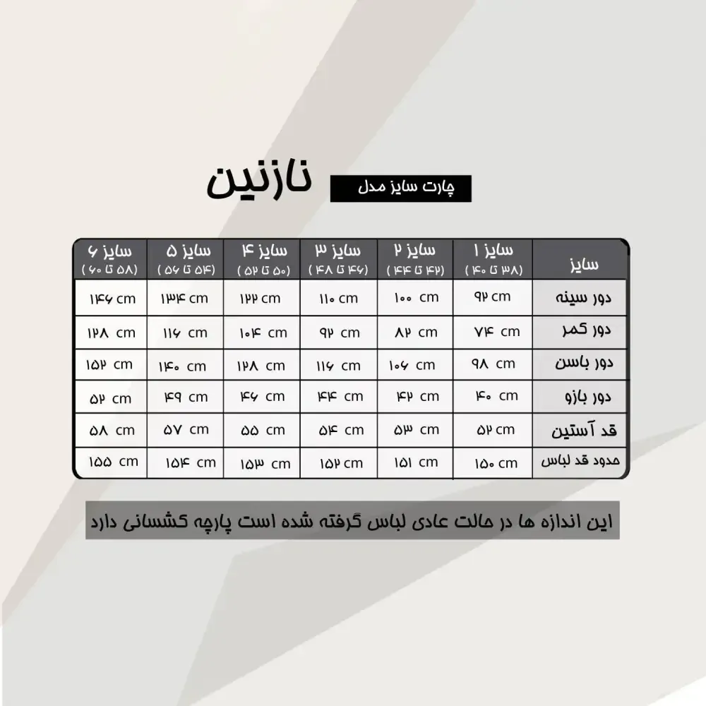 ماکسی مجلسی نازنین در سایزبندیهای متنوع برای بانوان سایزبزرگ طراحی شده است تا همه بتوانند از زیبایی و شکوه این لباس بهرهمند شوند.