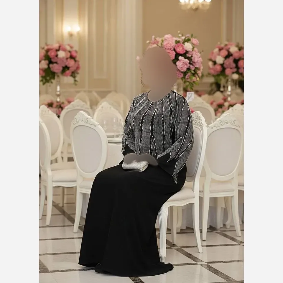 تزیینات ظریف و درخشان نگین و مروارید بر روی لباس، جلوهای لوکس و مجلسی به آن بخشیده است. این جزئیات هنرمندانه، ماکسی نازنین را به یک اثر هنری پوشیدنی تبدیل کرده و نگاهها را به سمت شما جلب خواهد کرد.