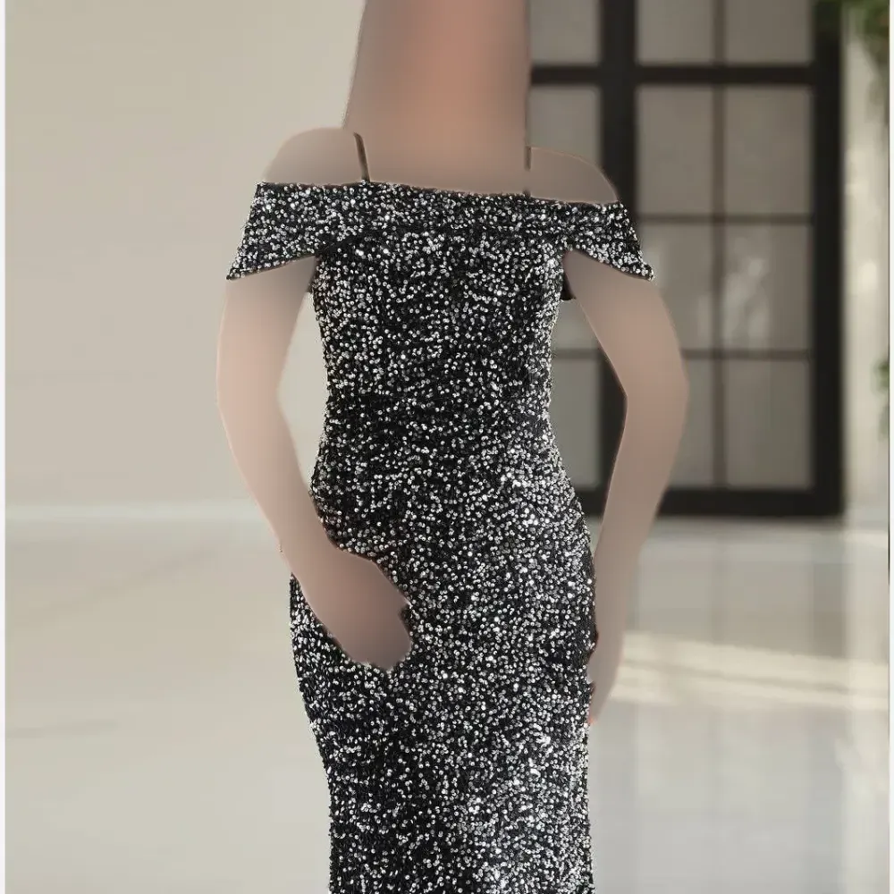 لباس مجلسی زنانه مدل الیسا پولک مخمل سایزبزرگ مشکی نقره ای