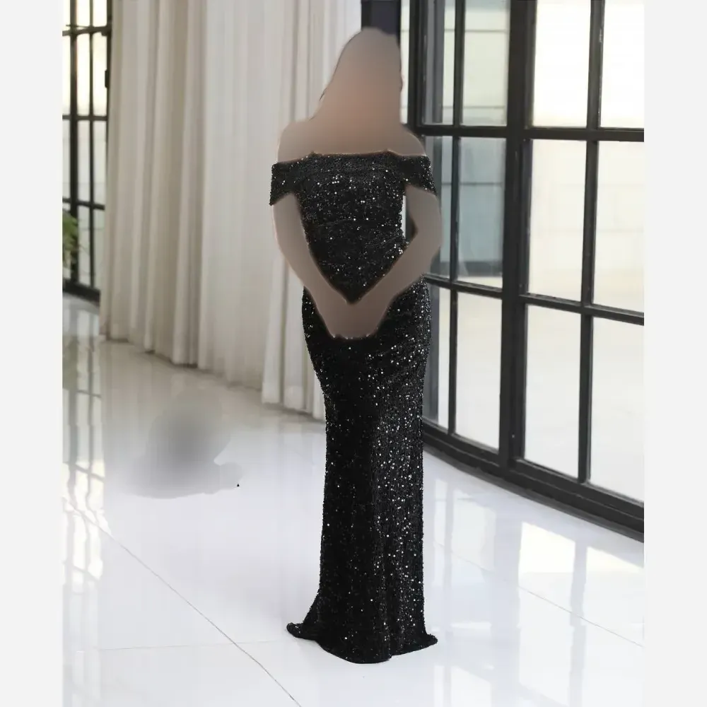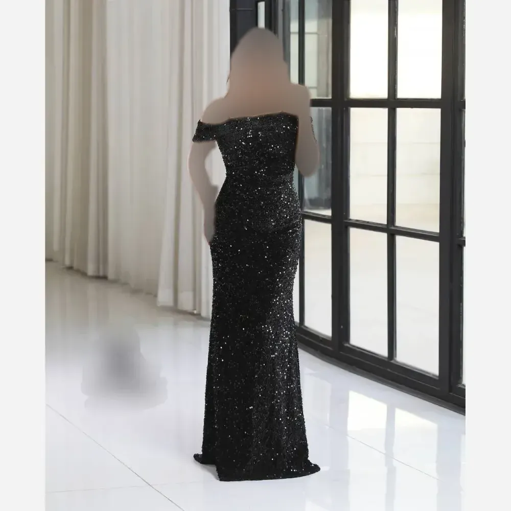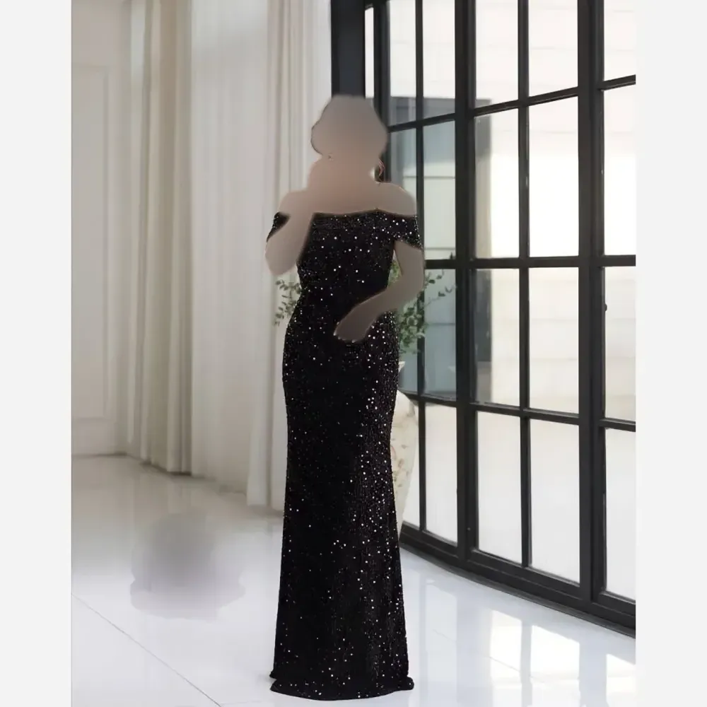لباس مجلسی زنانه مدل الیسا پولک مخمل آستردار سایز 38 تا 50 مشکی نقره ای
