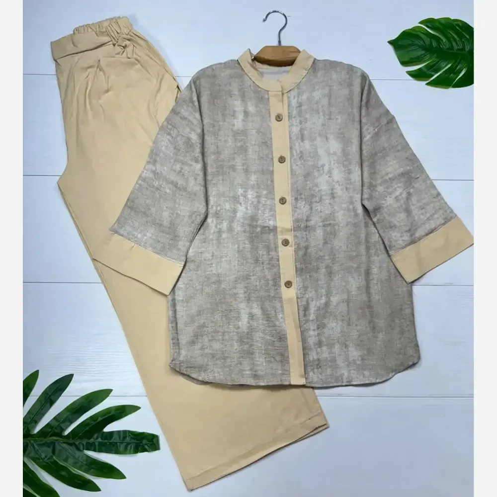 * **کاربردی و شیک:** شومیز این ست دارای دکمههای کاربردی است و طراحی کلی ست به گونهای است که هم برای موقعیتهای نیمهرسمی و هم برای استایلهای روزمره کاملاً مناسب است.
