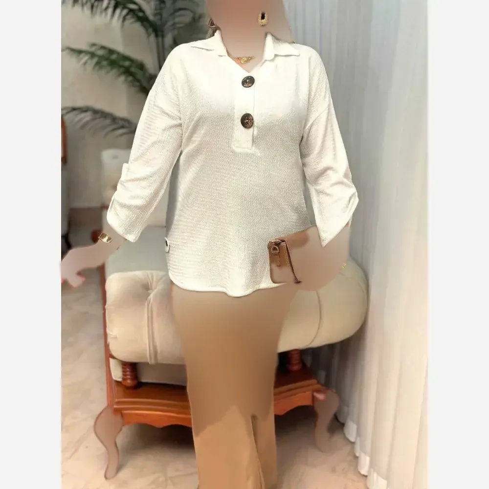این شومیز با تنخور عالی و کیفیت بالا، گزینهای ضروری برای کمد لباس هر خانمی است که به دنبال ترکیبی از زیبایی، راحتی و کیفیت است.