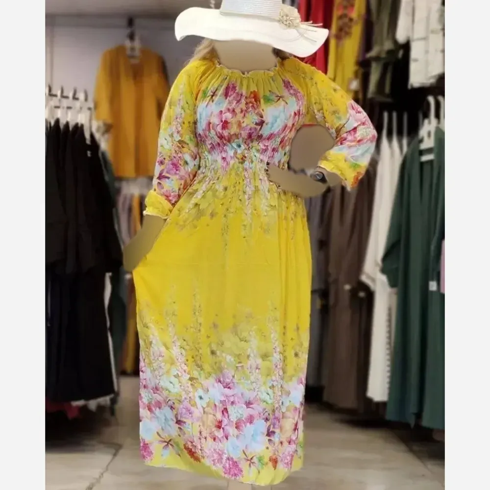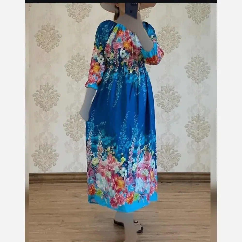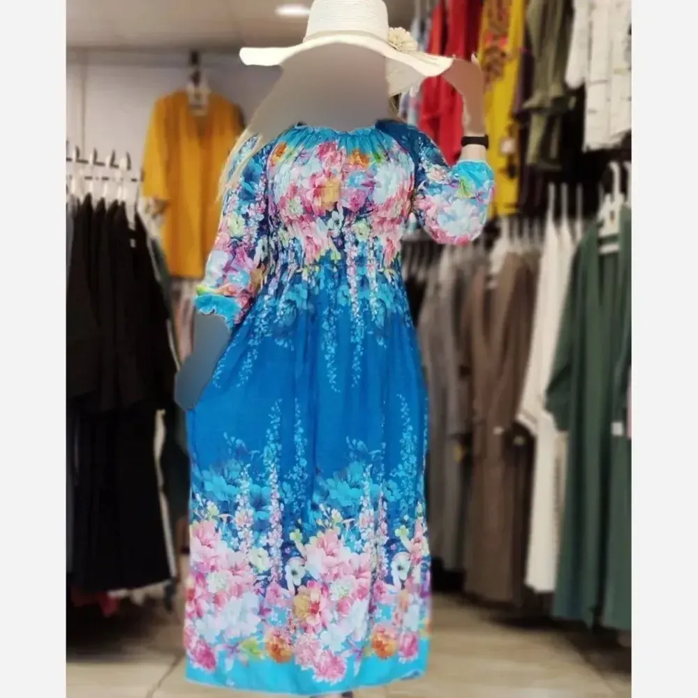 **پیراهن ساحلی تمام نخ زنانه فری سایز (مناسب سایز 38 تا 46) - قد 125 سانت**