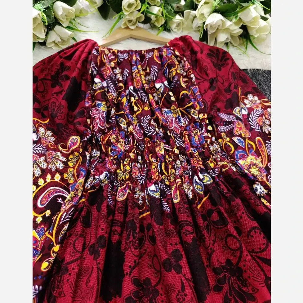 قد 127 سانتیمتری این پیراهن، تنخور زیبا و چشمنوازی را ایجاد میکند. طراحی کمر کش با پهنای 7 سانتیمتر، همراه با یقه و سر آستینهای کشدار، راحتی فوقالعادهای را هنگام پوشیدن فراهم میآورد و امکان استفاده آسان را برای سایزهای مختلف فراهم میسازد. این پیراهن به صورت فری سایز طراحی شده و برای سایزهای 38 تا 48 مناسب است.