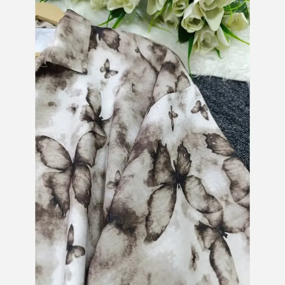 این شومیز گرهی زنانه با طرح جذاب پروانه و جگوار، انتخابی ایدهآل برای خانمهای شیکپوش و بهروز است. این شومیز وارداتی با بهرهگیری از پارچه جگوار درجه یک، کیفیتی بینظیر را ارائه میدهد و برای استفاده در تمام فصول مناسب است.