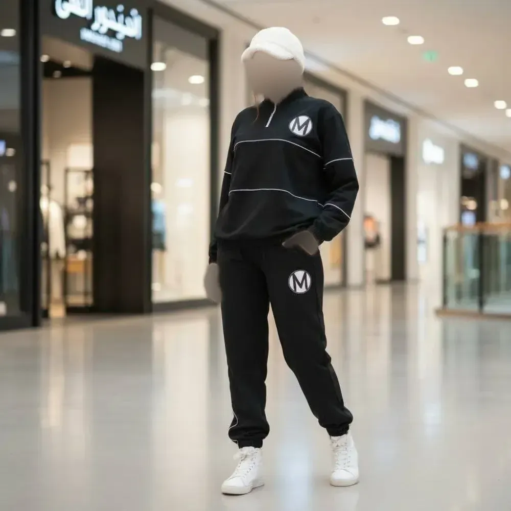 **ست سویشرت و شلوار زنانه مدل M، فری سایز، جنس گلکسی پنبه مشکی**