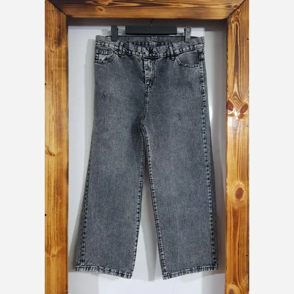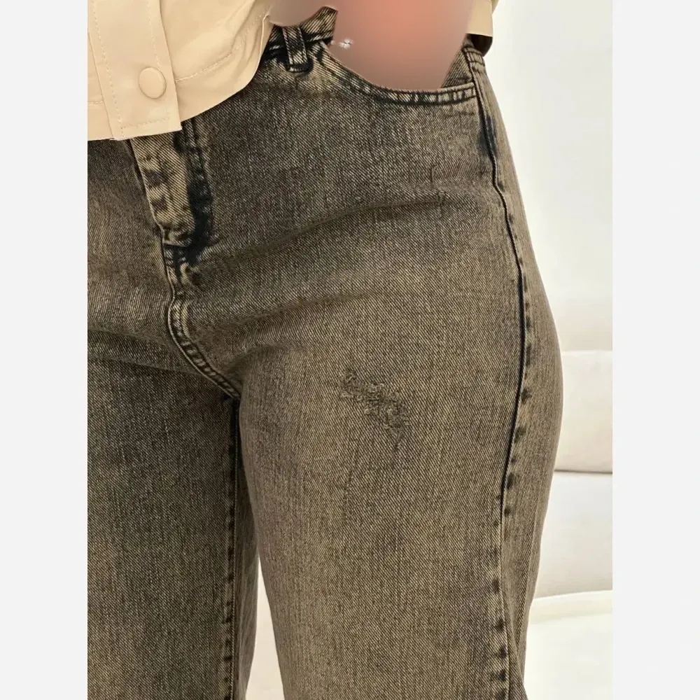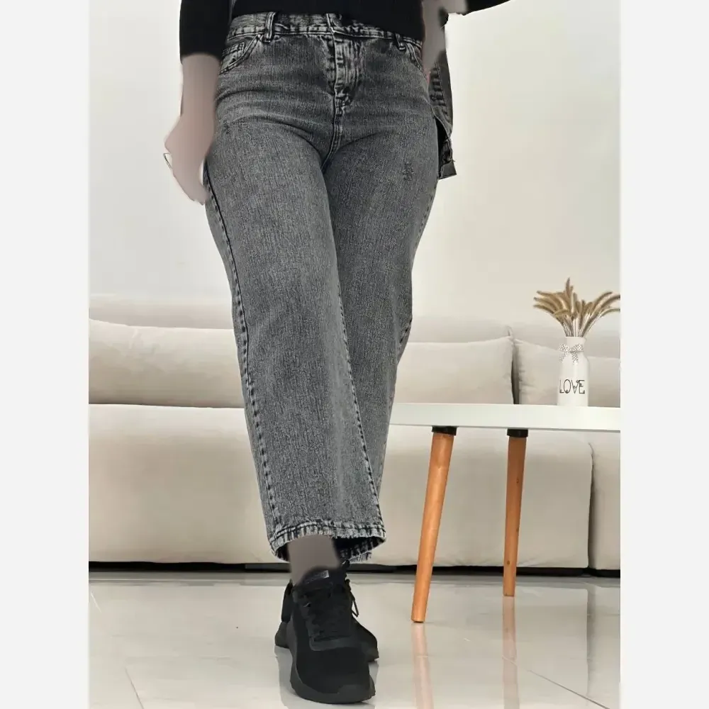 شلوار نیم بگ واید زنانه جین سنگشور شده طوسی و کرم سایز 38 تا 48