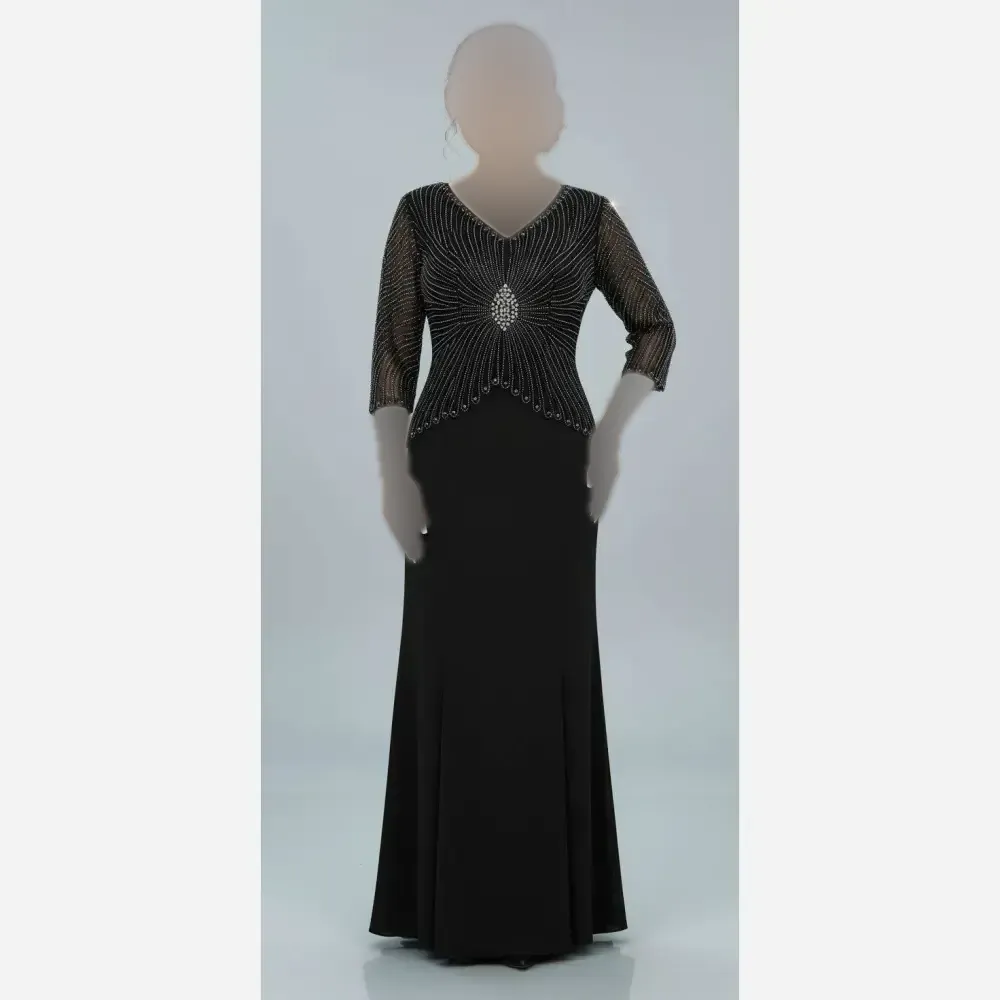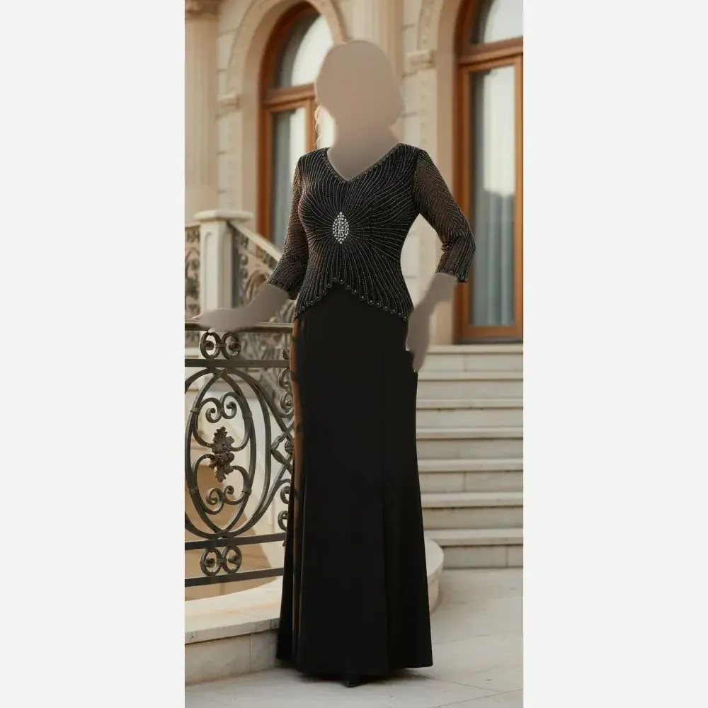 پیراهن مجلسی ماکسی سایزبزرگ روناک جدید زنانه سایزبندی 44 تا 54 قد 150 تور لمه ترک نگین مروارید مشکی سبز