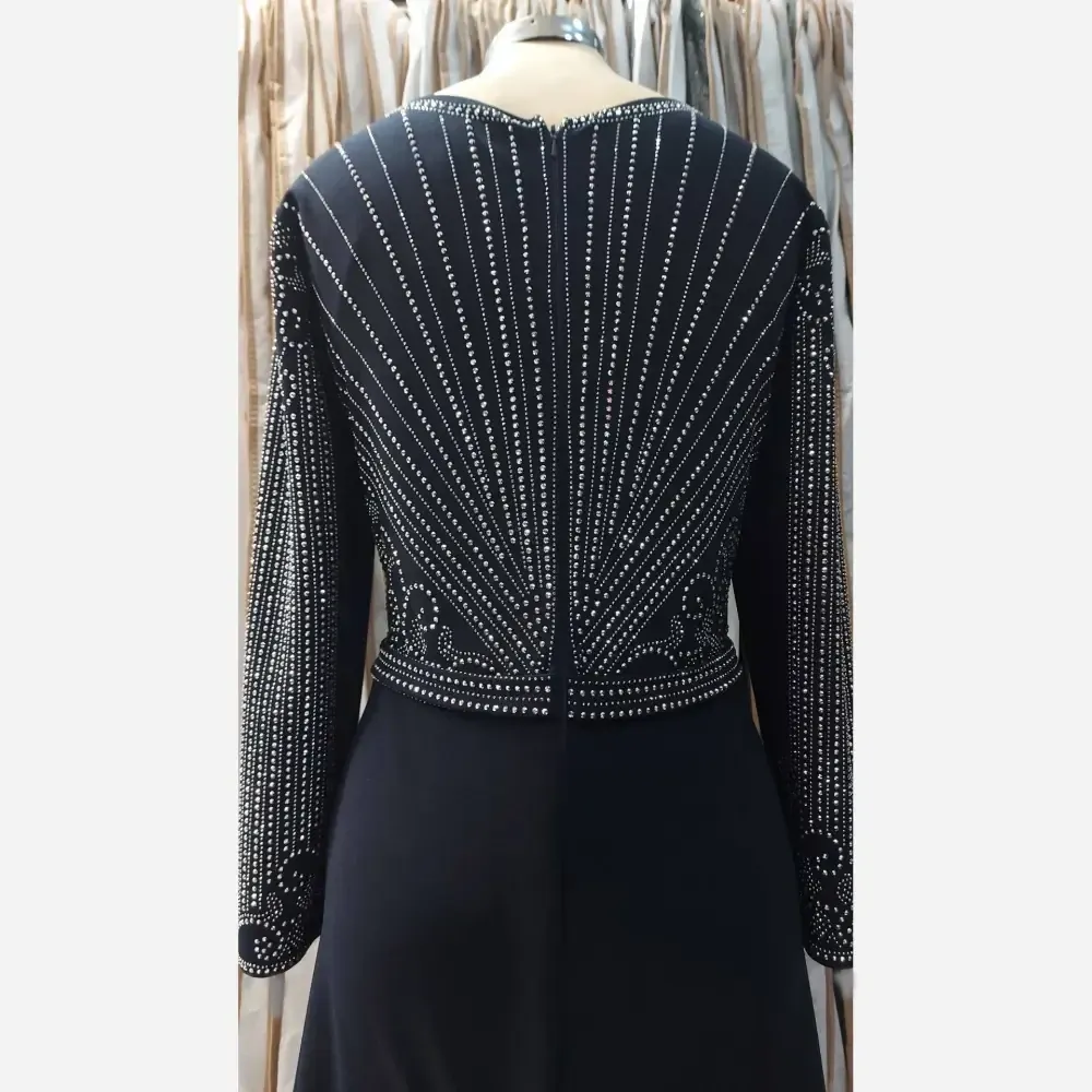 مانتو مجلسی زنانه شهلا کرپ دالقیچ نگین دار قد 150 مشکی سورمه ای سایزبزرگ