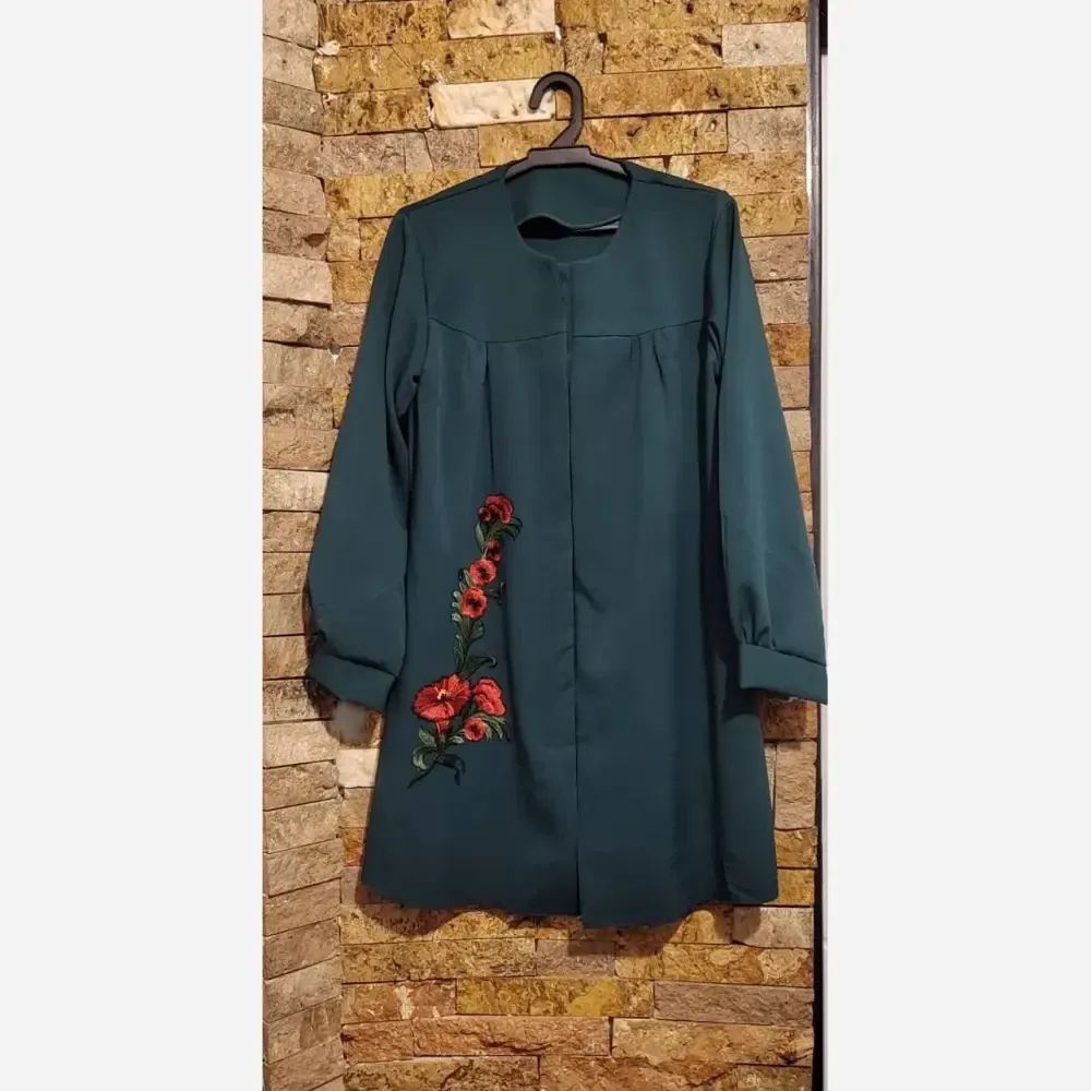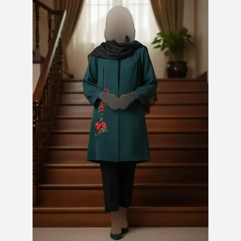 مانتو طرح گل گیس مازراتی سبز و مشکی سایز 1 و 2 قد 90