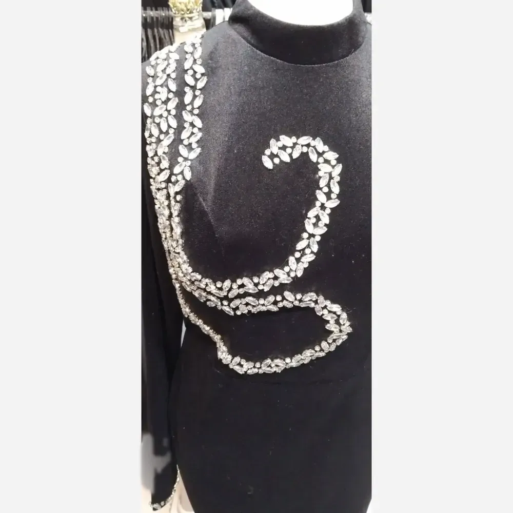 رنگ مشکی، نمادی از وقار و زیبایی، در هر دو جنس کرپ دالقیچ و مخمل برای این مانتو در نظر گرفته شده است. 🖤