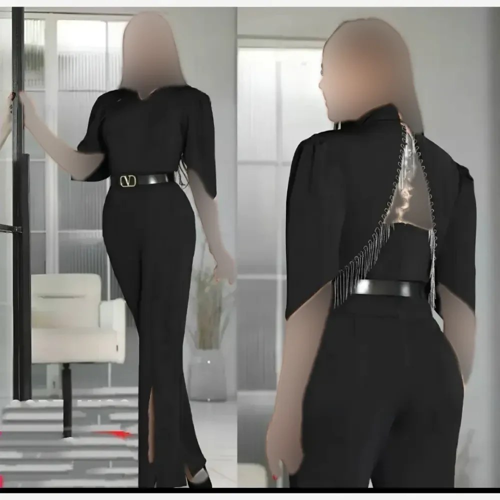 سرهمی مجلسی پشت زنجیری فری سایز غواصی اعلا مشکی قد 140 کمربند دار