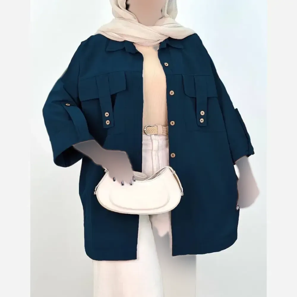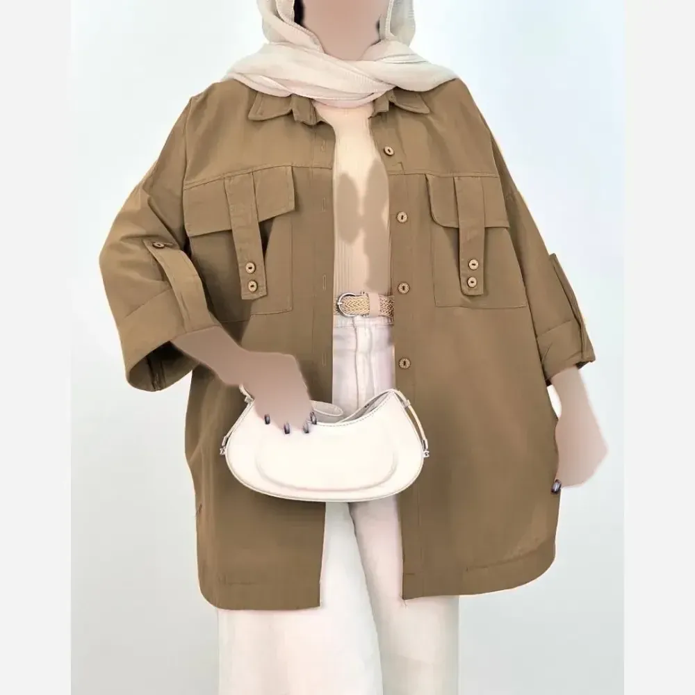 جیبها و دکمههای این مانتو کاملاً کاربردی هستند و به زیبایی طراحی آن افزودهاند. 🧥