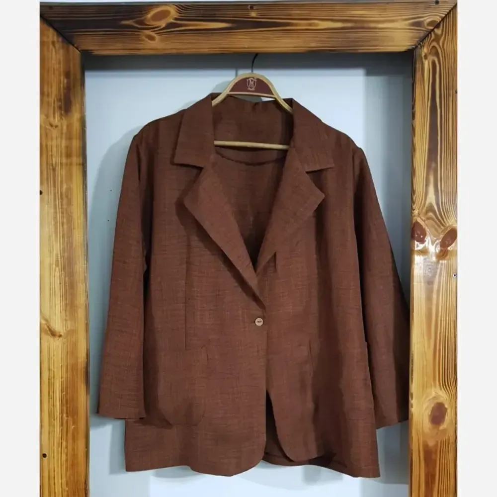 این کت با جنس شانتون، راحتی و زیبایی را همزمان به شما هدیه میدهد. طراحی فری سایز آن، مناسب سایزهای 38 تا 44 بوده و به خوبی روی اندام شما مینشیند.