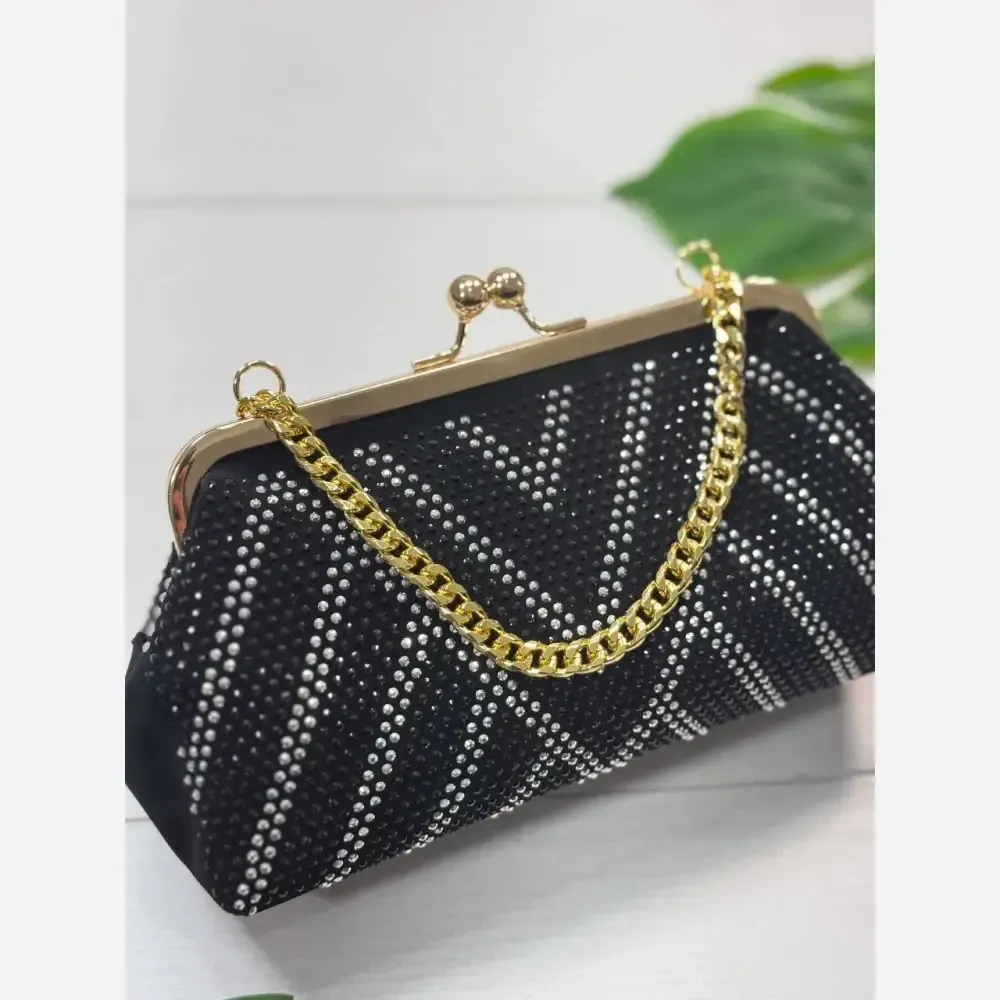 این کیف زیبا با جنس نانسی نگیندار، جلوهای لوکس و چشمنواز به استایل شما میبخشد. رنگ مشکی کلاسیک آن، قابلیت ست شدن با انواع لباسها را فراهم میکند و استایلی شیک و بهروز را برایتان تضمین میکند.